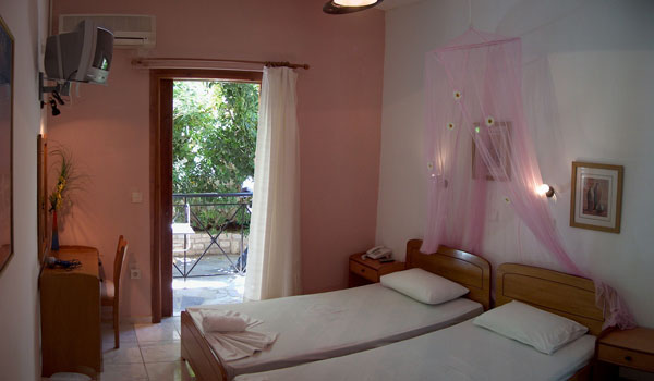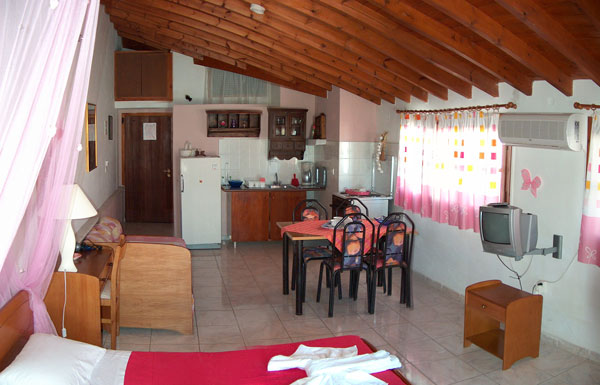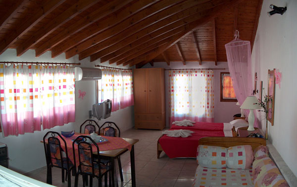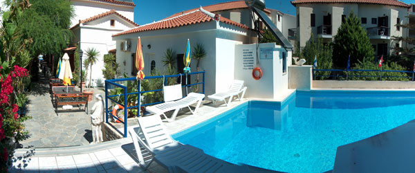 LAMBROS consists of 2 separate buildings with a swimming pool situated in the middle where one can have a refreshing dip and relax on sunbeds. |